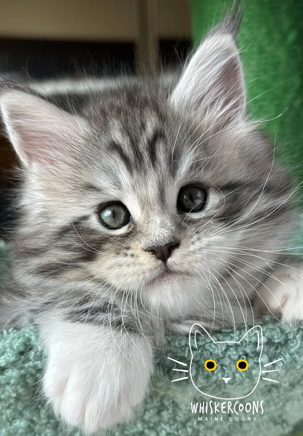 A stunning cat with a Blue Silver Mackeral or Spotted Tabby coat and beatiful large green eyes. Originating from a top-tier European breeder in Germany, Nico boasts strength, thickness, and a luxurious soft coat. Beyond his impressive physical attributes, Nico possesses a gentle temperament, characterized by a sweet and loving nature that manifests in delightful snuggles.